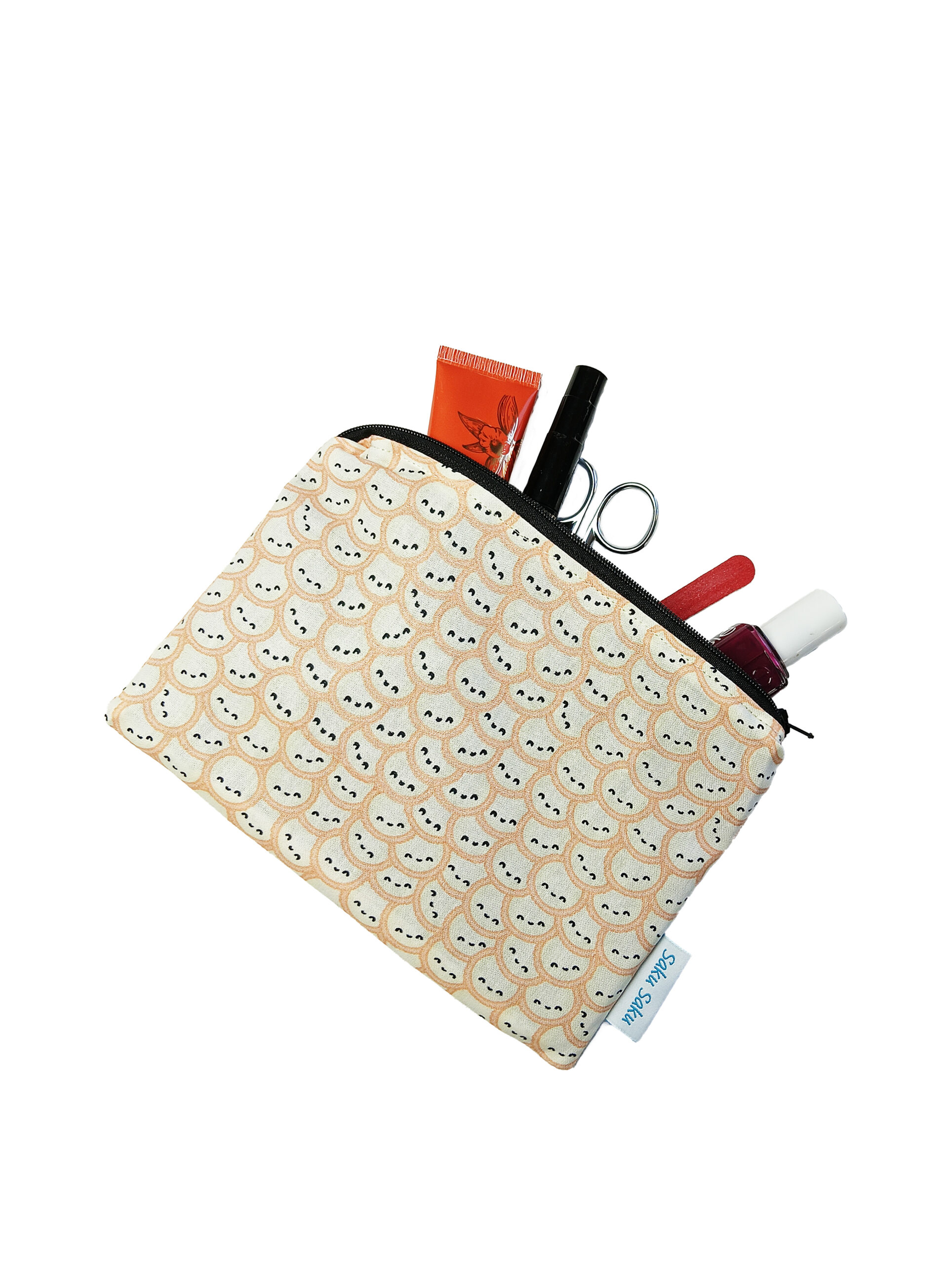 Tissus extérieur et intérieur : 100% coton. Elles sont doublées avec un tissu plus épais pour plus de protection et une finition parfaite. Elles se ferment à l’aide d’une fermeture à glissière. Ces pochettes sont réalisées dans un objectif Zéro Déchet et ont été confectionnées avec nos chutes de tissu. Tout comme les autres produits Saku Saku, elles sont facile d’entretien et passent à la machine à laver à 30°C. Dimension 20cm x 14cm