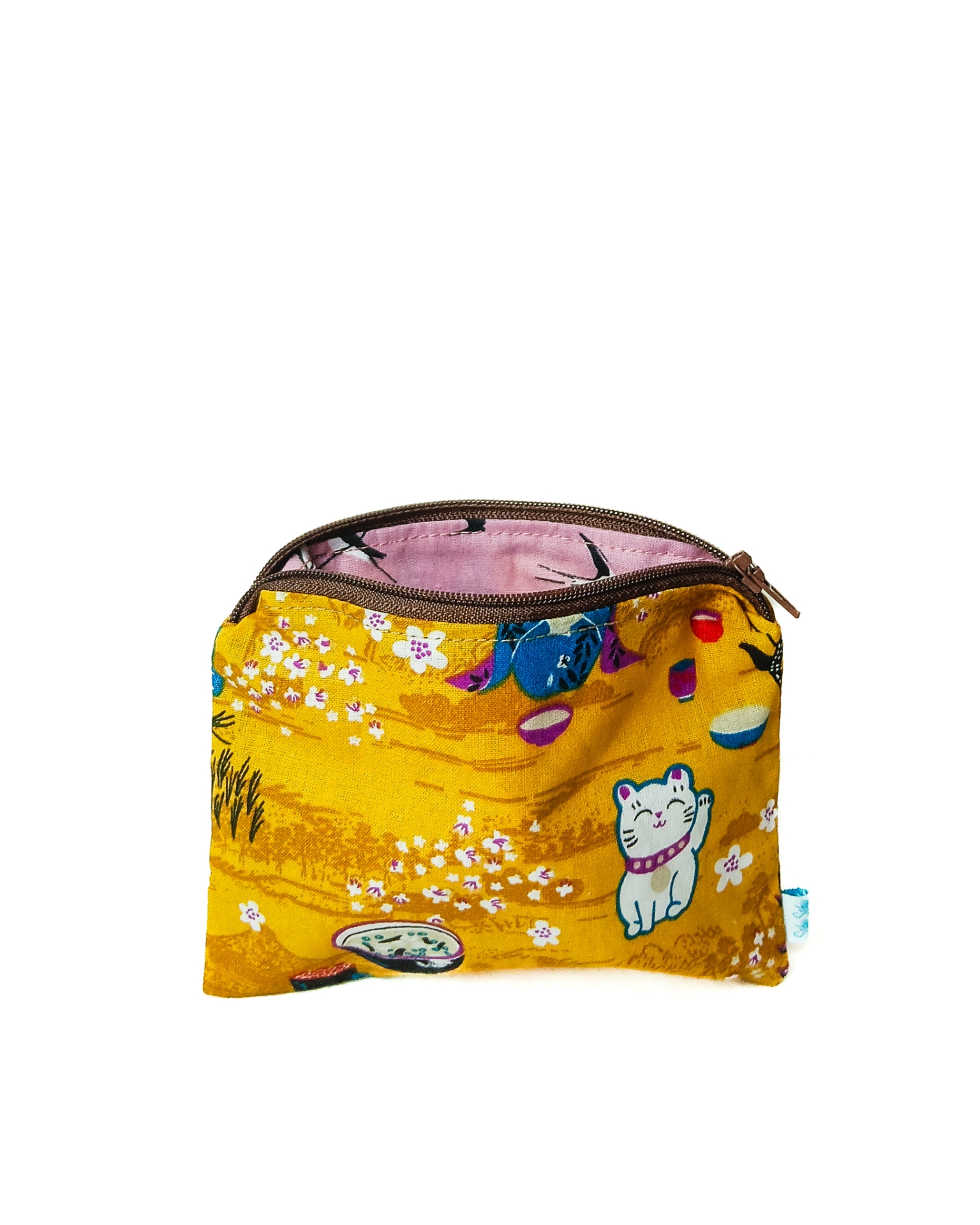 Tissu intérieur et extérieur : 100% coton. 13cm x 10cm. Les pochettes sont doublées pour plus de protection et pour une finition parfaite. Elles se ferment à l’aide d’une fermeture à glissière. Ces pochettes sont réalisées dans un objectif Zéro Déchet et ont été confectionnées avec nos chutes de tissu. Tout comme les autres produits Saku Saku, elles sont facile d’entretien et passent à la machine à laver à 30°C.