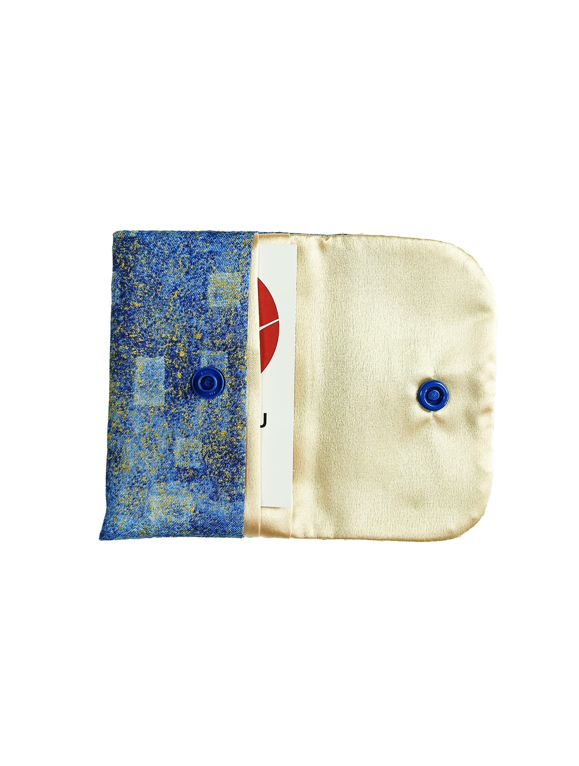 Tissu extérieur 100% coton . Tissu intérieur en polyester satiné. Ce porte-cartes se ferme d’un pression bouton en plastique. Il a été réalisé dans un objectif Zéro Déchet et a été confectionné avec nos chutes de tissu. Tout comme les autres produits Saku Saku, il est facile d’entretien et passe à la machine à laver à 30°C. Conseil : Pour l’ouvrir, placez vos pouces au plus près de la pression.
