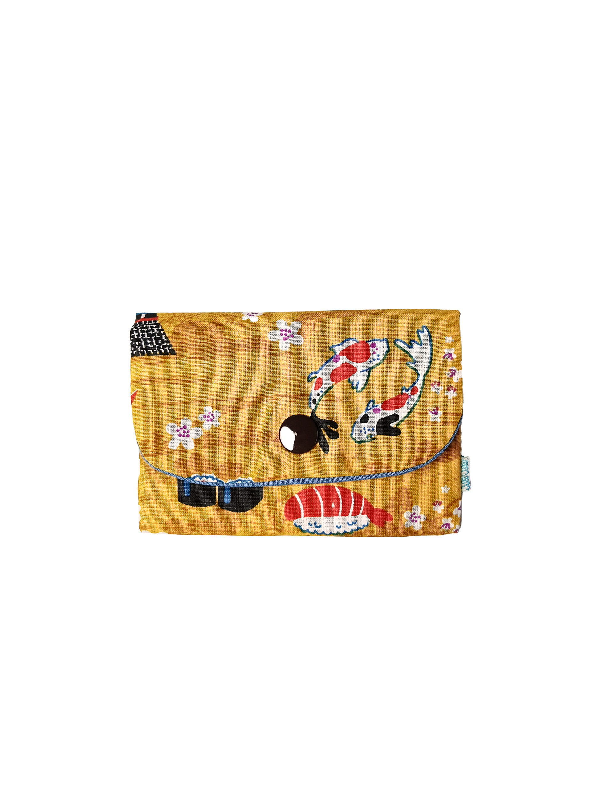 Tissu extérieur : Un imprimé coton motifs japonais. Tissu intérieur : Un coton bleu uni . Ce porte-cartes se ferme d’un pression bouton en plastique. Il a été réalisé dans un objectif Zéro Déchet et a été confectionné avec nos chutes de tissu. Tout comme les autres produits Saku Saku, il est facile d’entretien et passe à la machine à laver à 30°C. Conseil : Pour l’ouvrir, placez vos pouces au plus près de la pression.