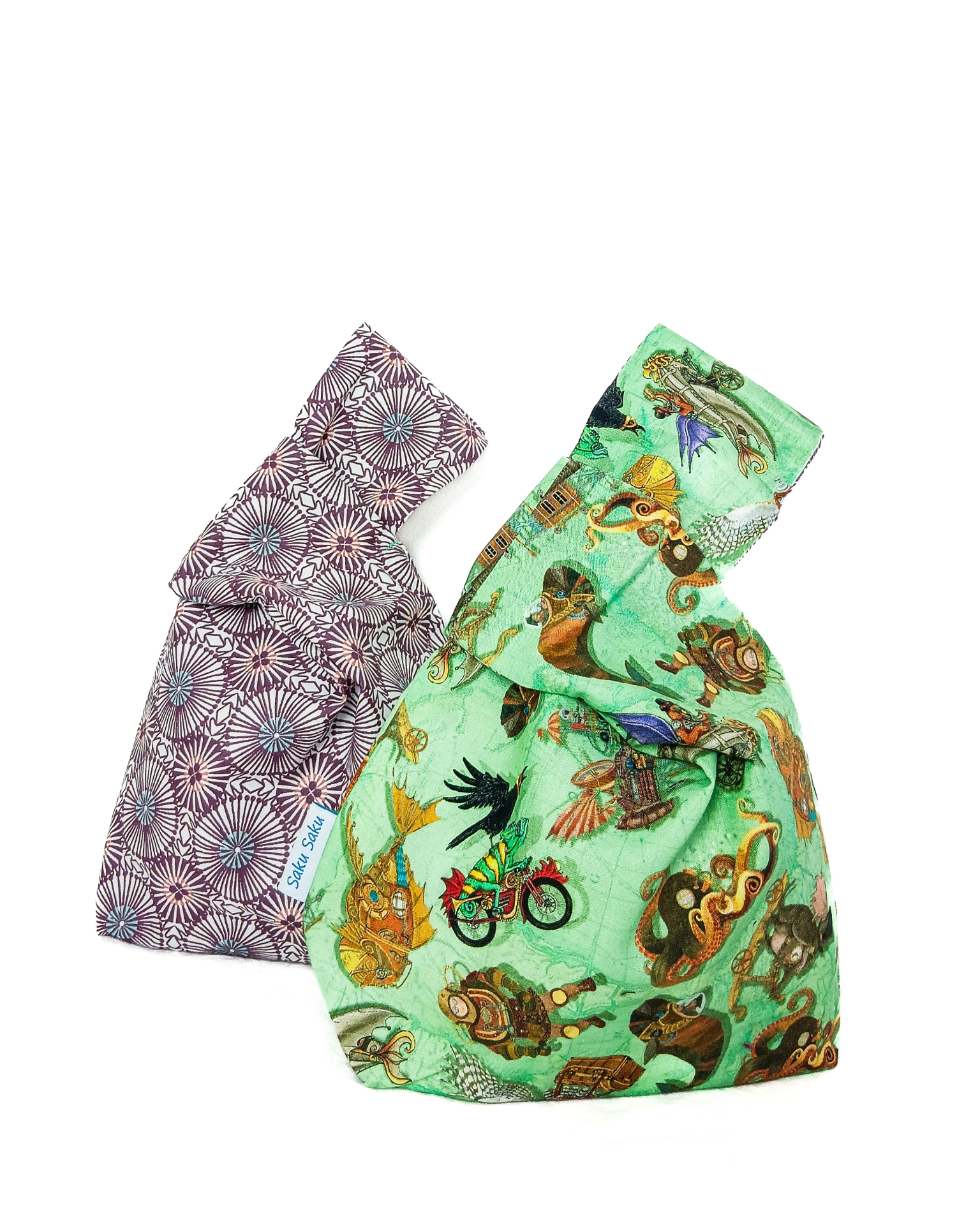 Confectionné dans un coton vert avec un imprimé steampunk. Revendiquez votre personnalité en portant fièrement ce Saku Saku à votre poignet ! L’intérieur est en coton. Deux sacs en un seul, que vous pourrez retourner à l’envie. Son système de fermeture original et astucieux se fait par coulissage et ne laisse rien passer ! Dimension : 35 x 25 cm Fabrication artisanale et française !