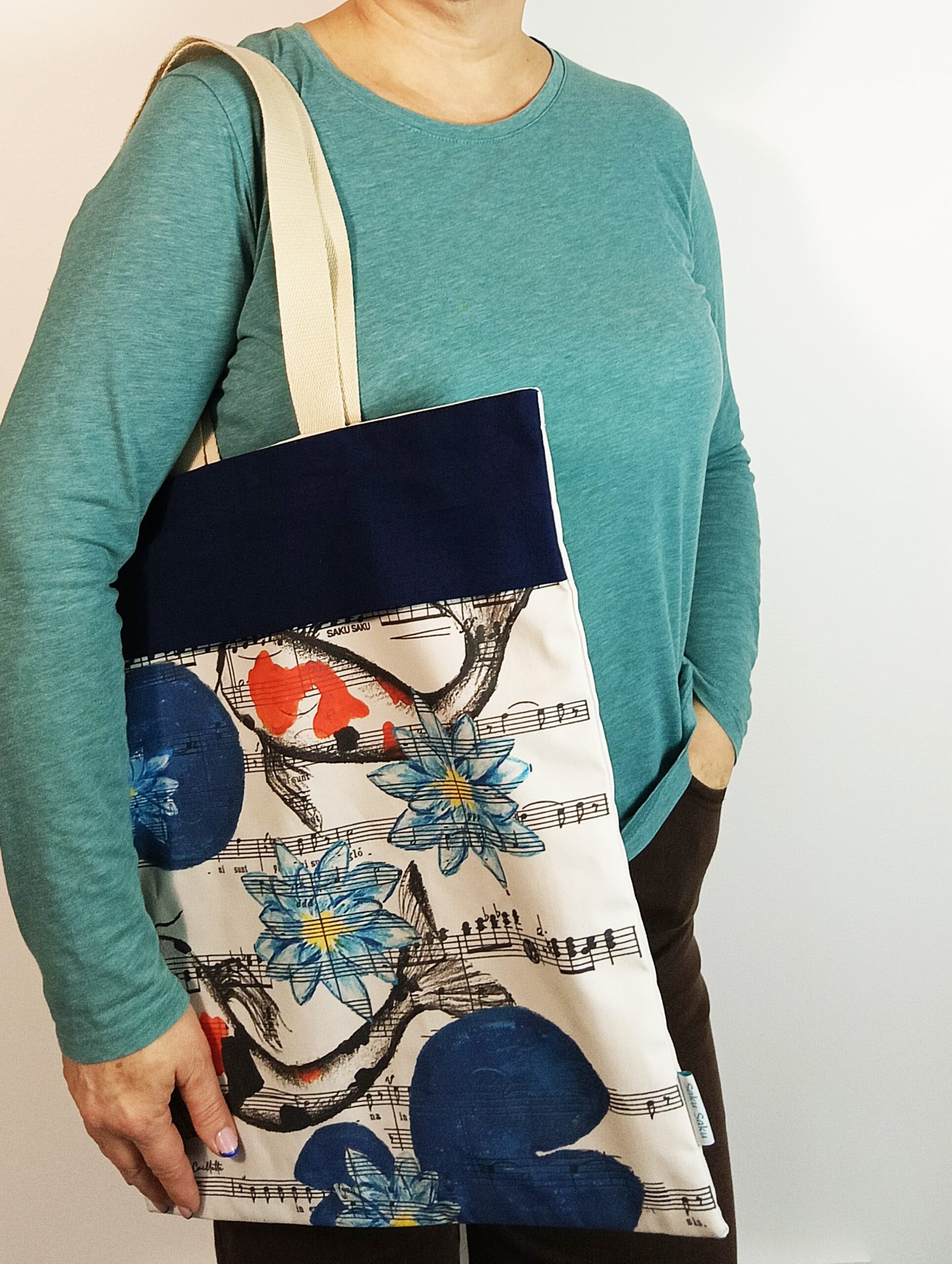 L’imprimé est une création exclusive de Saku Saku. Si vous cherchez bien, vous y verrez le logo (la grue dans un cercle) subtilement caché dans le motif ! 100% coton, ainsi que son rabat couleur bleu foncé. La sangle est en coton également et fait 32cm de hauteur. Les dimensions sont 38cmx41cm. Le sac est très facile d’entretien et passe à la machine à 30°C. Les cotons utilisés sont robustes et vous pourrez transporter votre ordinateur en toute confiance. Le plus de ce sac : vous pouvez retourner le rabat pour fermer votre sac. Un système simple et ingénieux pour marcher en ville sereinement.