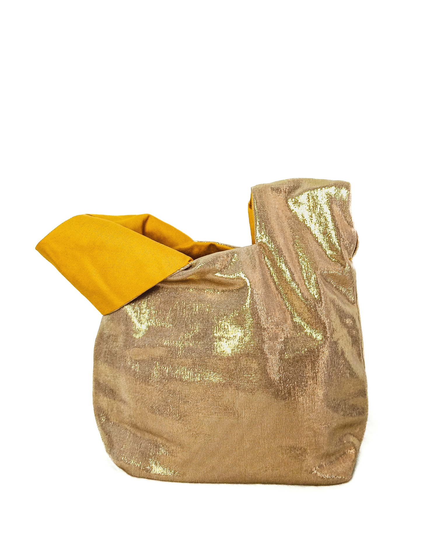 Un Saku Saku doré pour une élégance assurée ! Ce Saku Saku a deux poches intérieures. Tissu extérieur : Polyester . Tissu intérieur en coton. Dimension : 35×25 cm. Fabrication française et artisanale. Lavable en machine à 30°C, dans un filet protecteur. Repasser sur l’envers.
